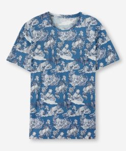 We have focused on uniting beautiful, inspirational designs with our market-leading technical approach for our resortwear range. Featuring our blue island hopping print; a modern interpretation of a toile du jouy. Filled with tropical trees and plant life, it features a tropical bird flying in between islands.