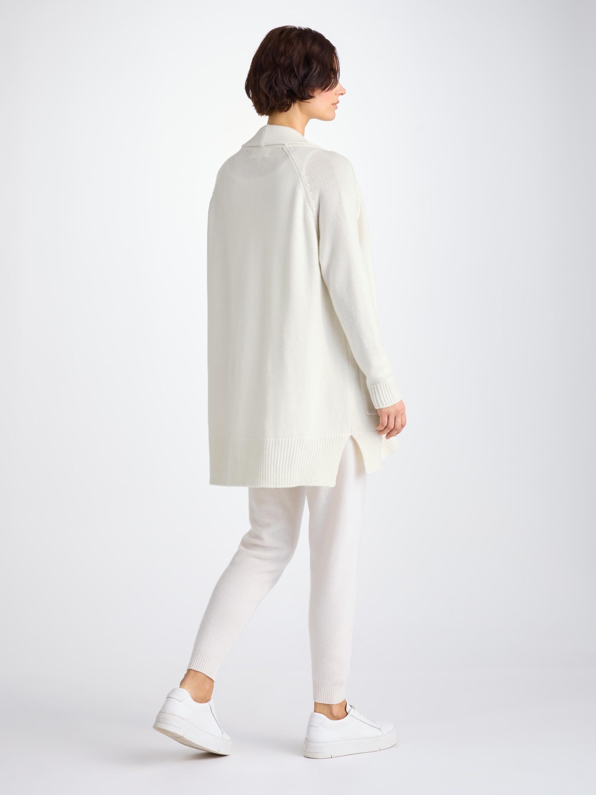 A cashmere cardigan is the perfect way to add a little luxury to your everyday outfit. Our Nina women’s cashmere cardigan in white has a relaxed, oversized fit and a cosy feel.