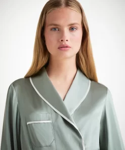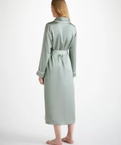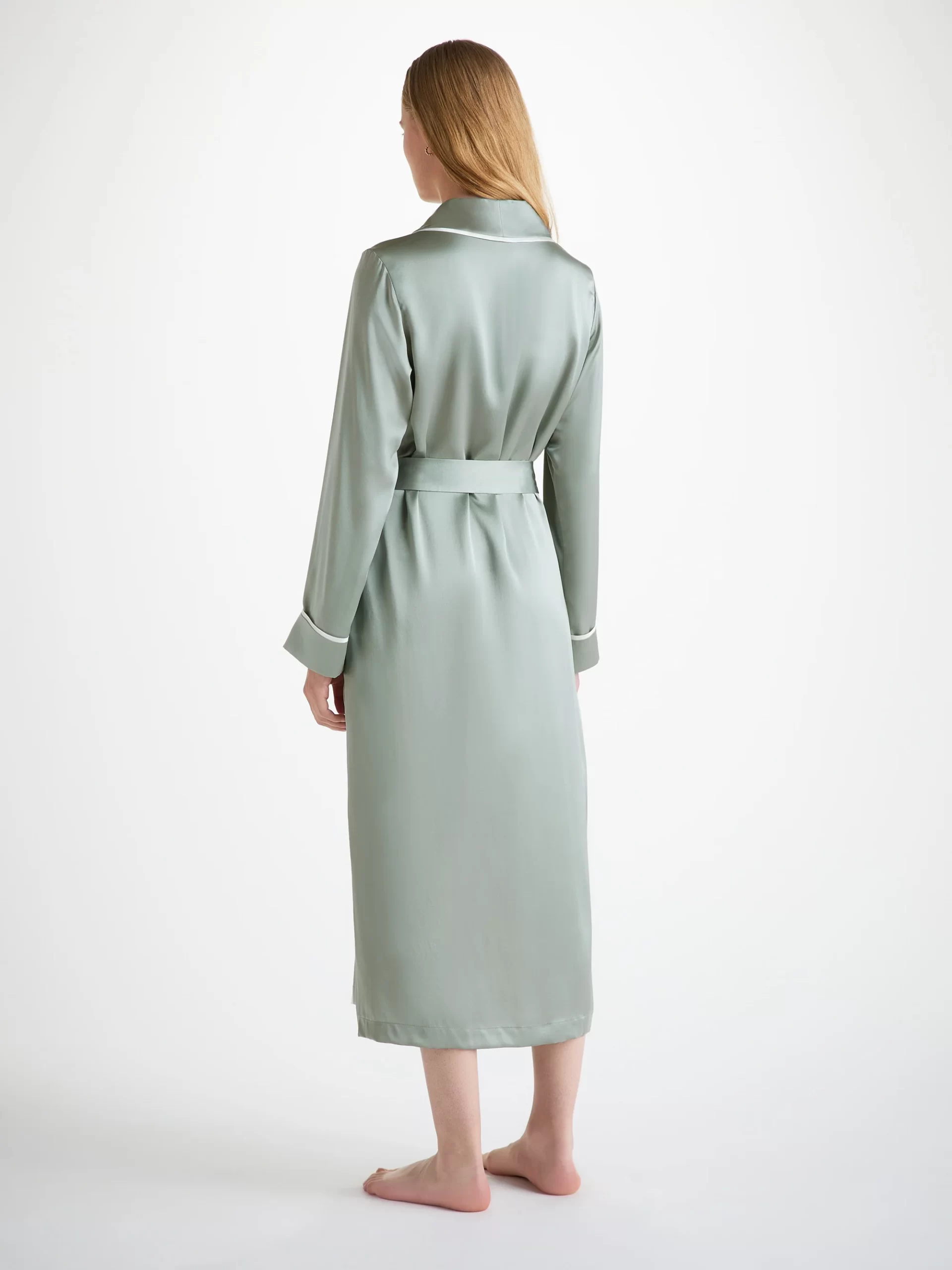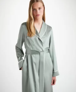 DEREK ROSE Women’s Long Robe Bailey Silk Satin Green Sage Green | WOMENS- Best Sellers