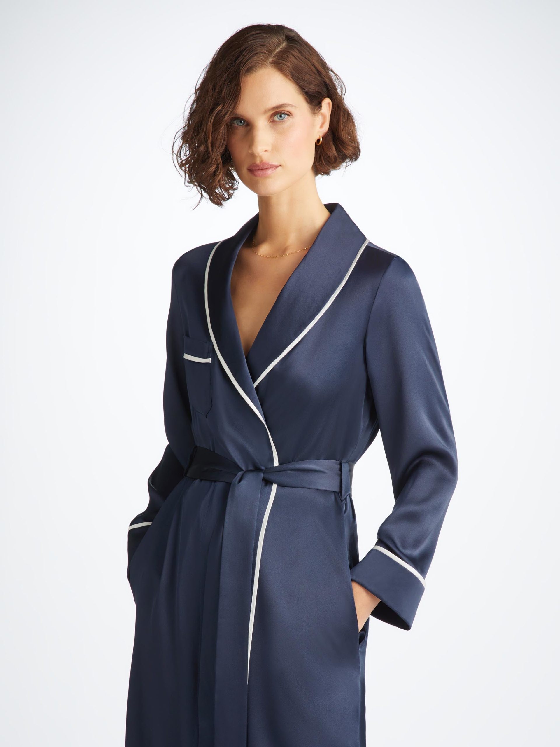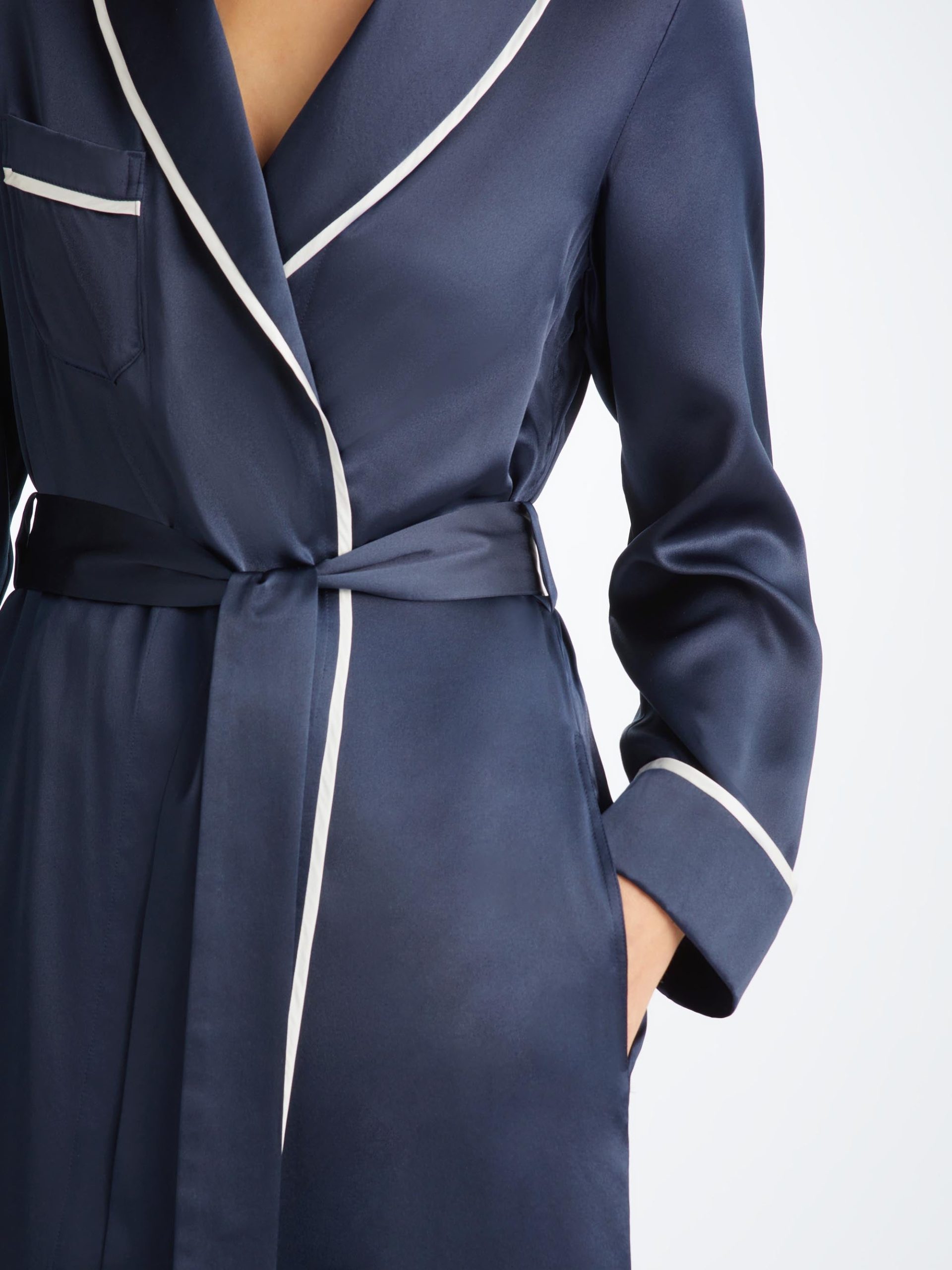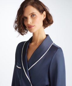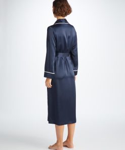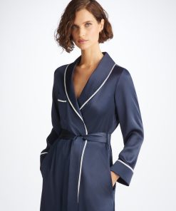 DEREK ROSE Women’s Long Robe Bailey Silk Satin Navy Navy | WOMENS- Best Sellers