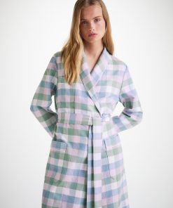 Made from unbelievably warm and comfortable winter weight brushed cotton, the fabric is woven into a green large scale check design and complete with white piping. The Kelburn fabric utilises a unique brushing technique to comb and soften the fibres for an extraordinarily soft handle… we won’t blame you for wearing it for years to come!