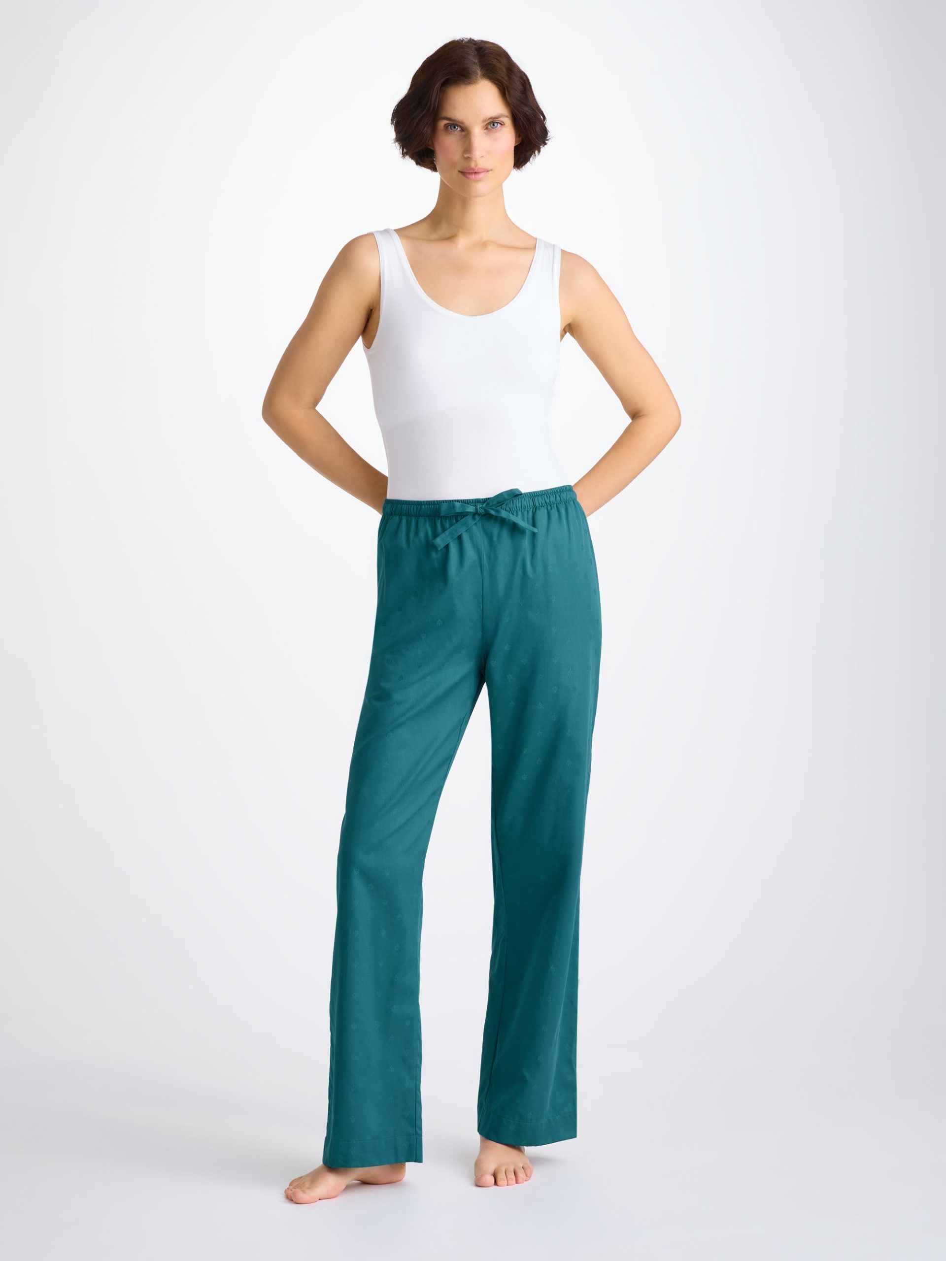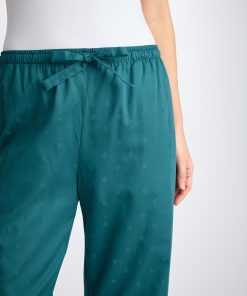 DEREK ROSE Women’s Lounge Pants Cotton Jacquard Jungle Green Paisley Motif Jungle Green | WOMENS- Gifts for Her