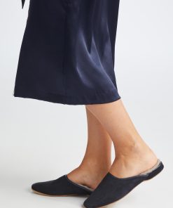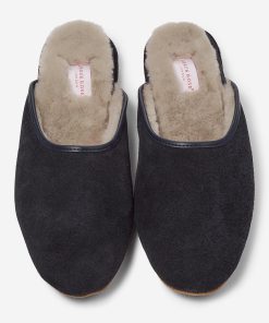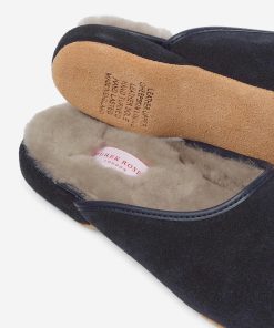 Look forward to getting up in the morning with our Imogen suede and sheepskin lined navy mule slippers for women. Trust us, your feet will thank you!