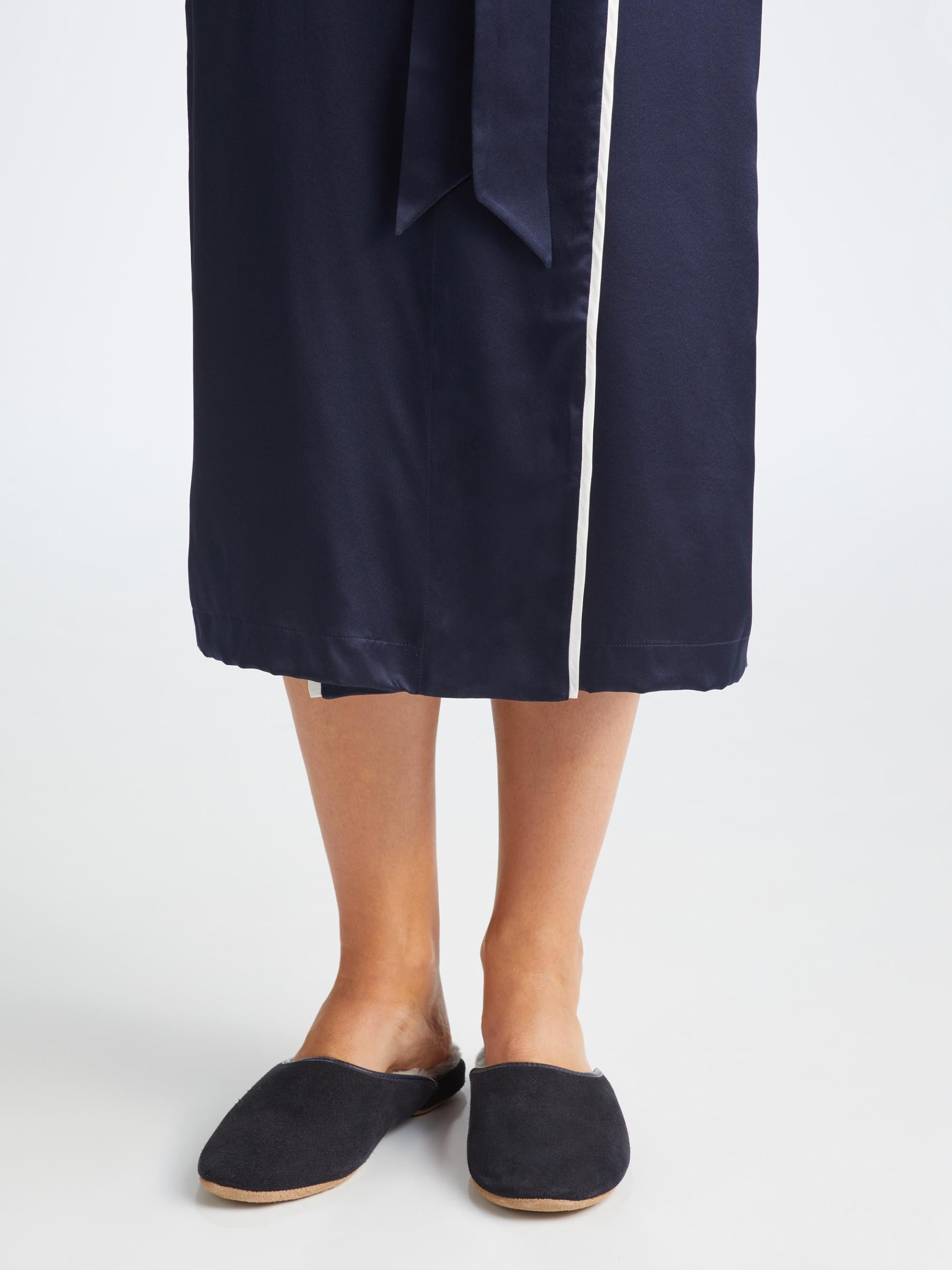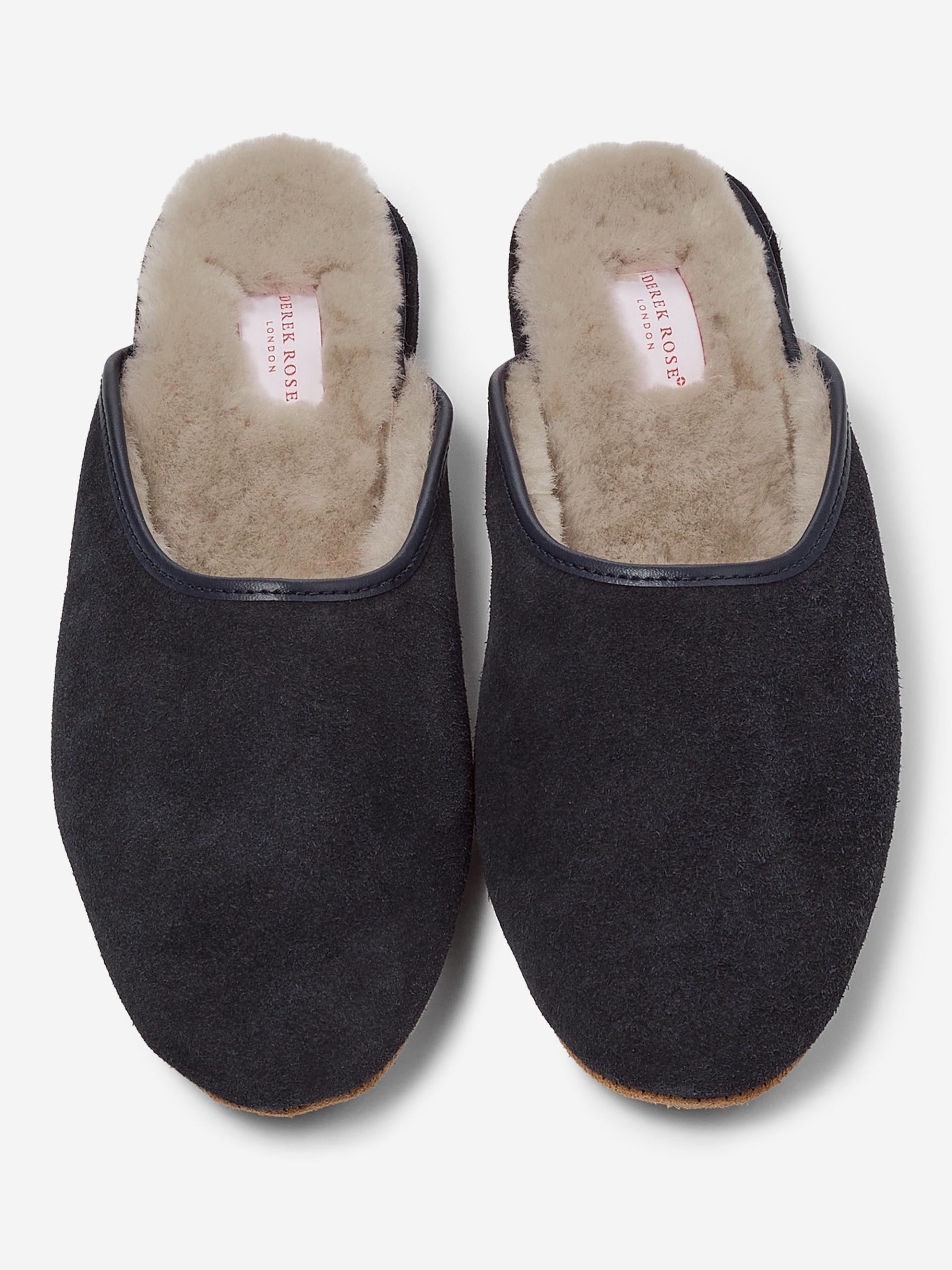 The sole is made from soft suede meaning you can glide around in comfort in the morning without waking the family. The slippers are finished with a navy leather trim for an added touch of luxe.