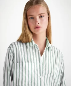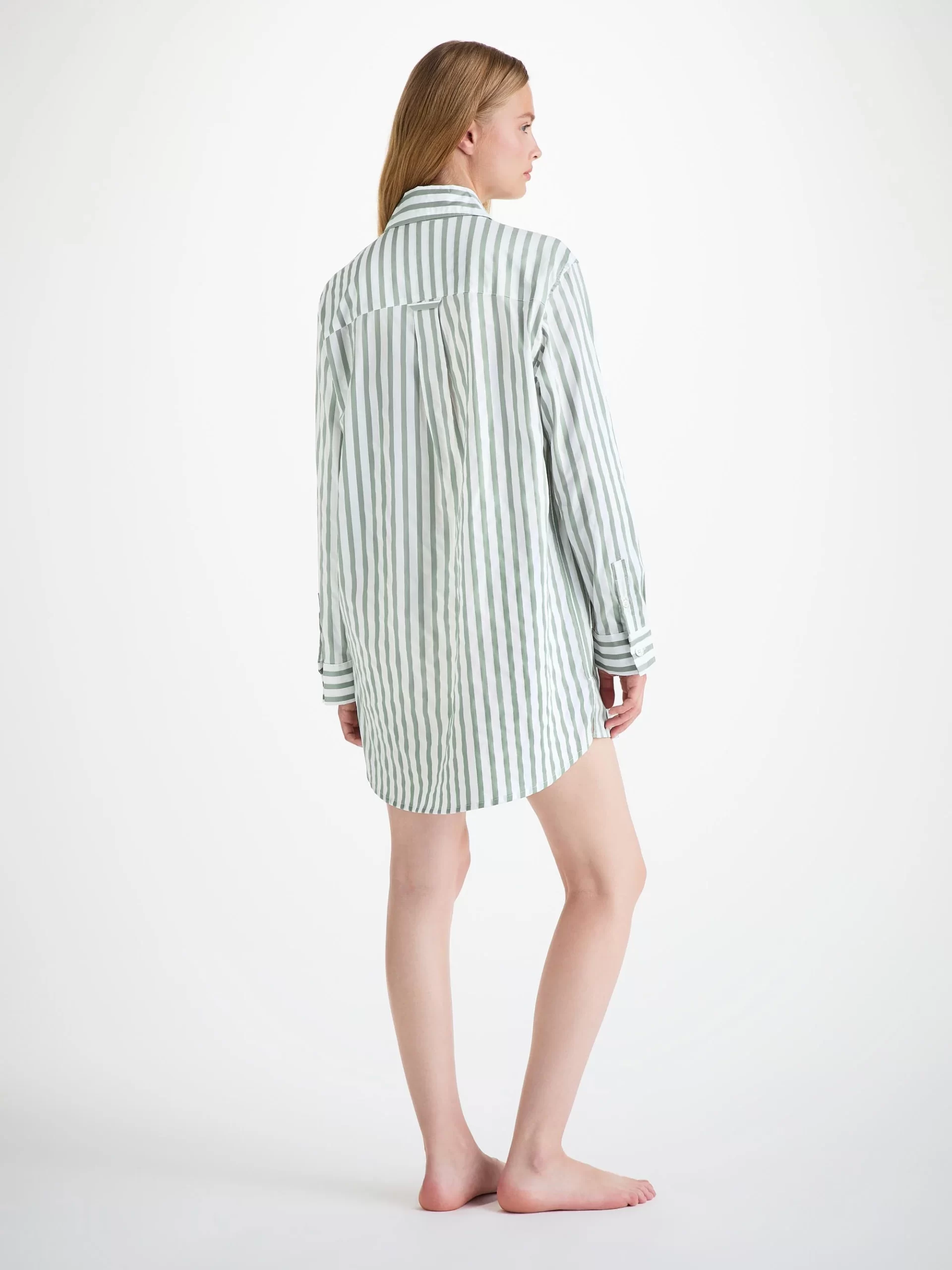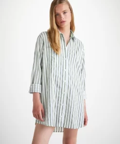 Designed with a lightweight cotton which is naturally hypoallergenic, a classic button up collar features imitation mother of pearl button fastenings, and a hanging loop at the back. Inspired by a classic menswear design, slip into this nightshirt in the warmer months for a cool and deep sleep.