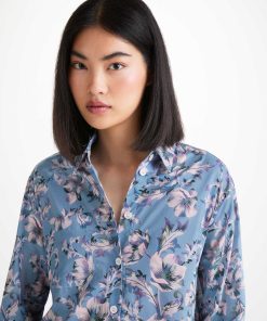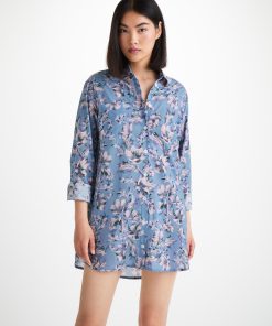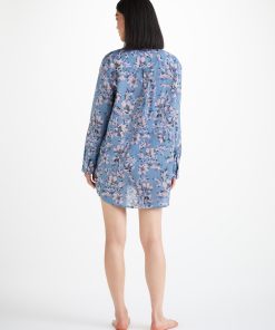 Seen here in a blue, hand drawn floral print inspired by the plant life found along the blustery cliff walks of the British coastline. This nightshirt has been constructed with a box pleat for ease of movement and simple curved hem with side vents for a perfect nights sleep.
