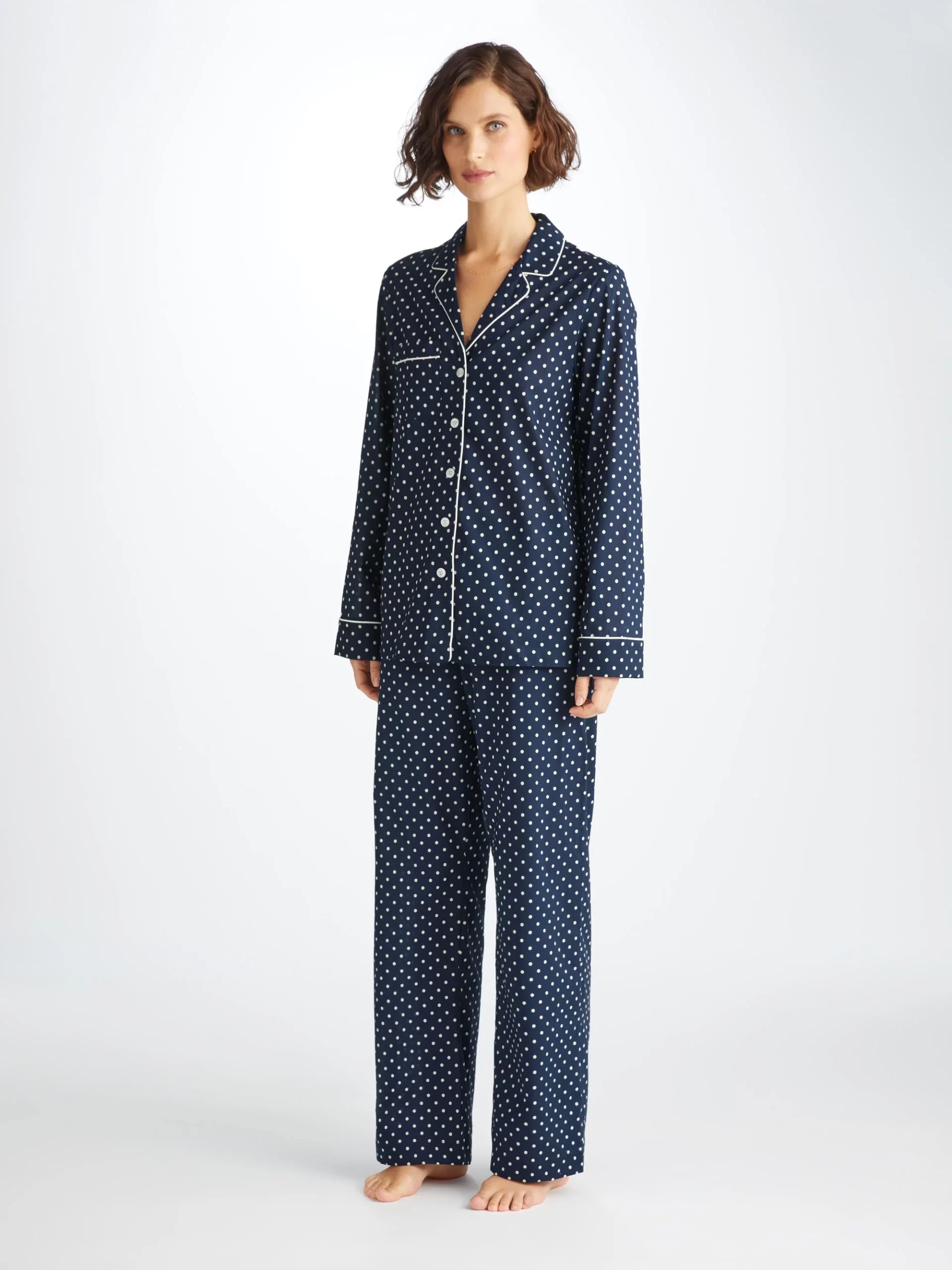 DEREK ROSE Women’s Pajamas Cotton Batiste Navy Polka Dot Print Navy | WOMENS- Best Sellers