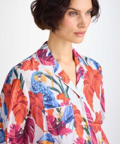 DEREK ROSE Women’s Pajamas Cotton Batiste White Jungle Birds Print White | WOMENS- Pajamas