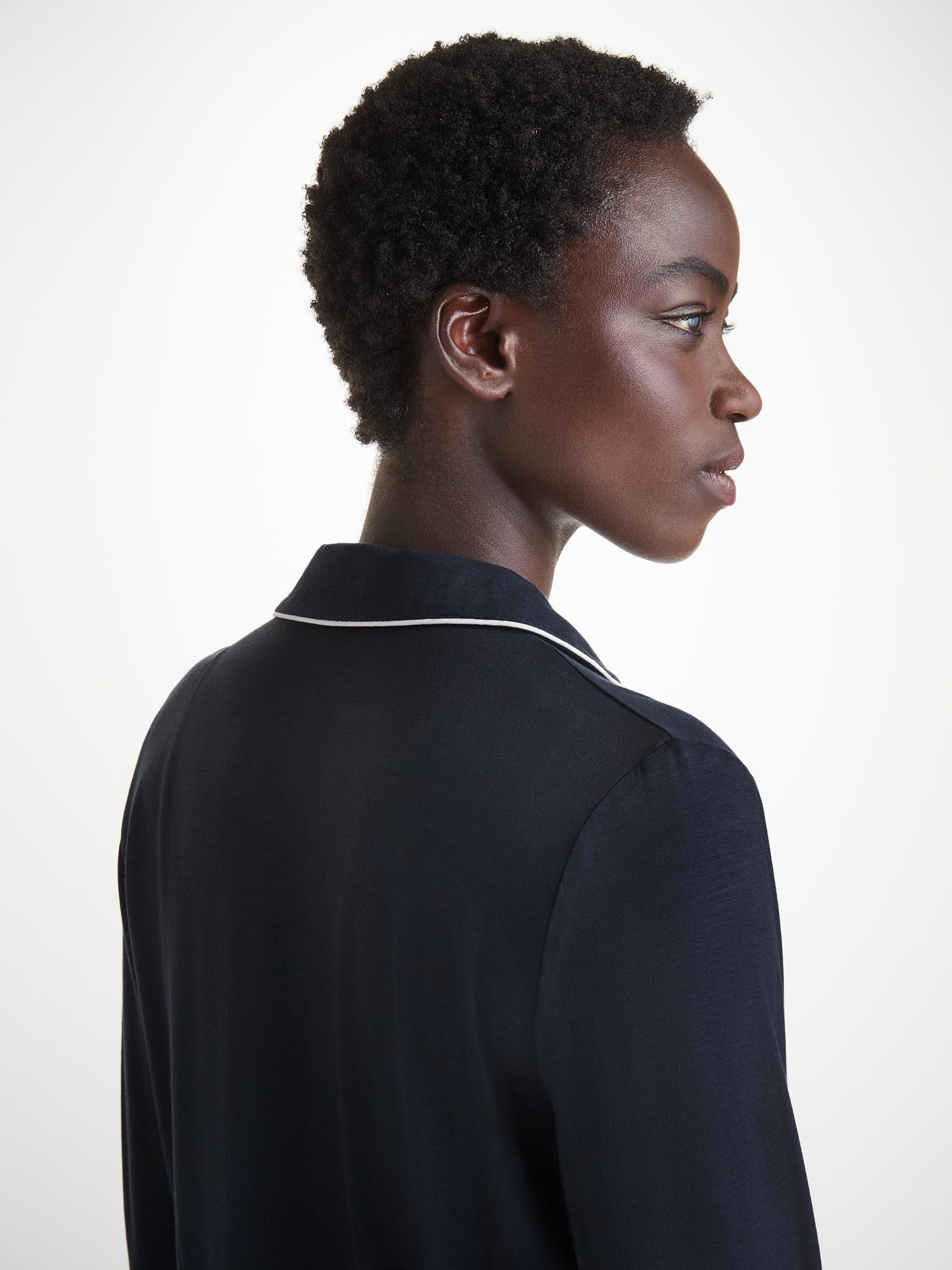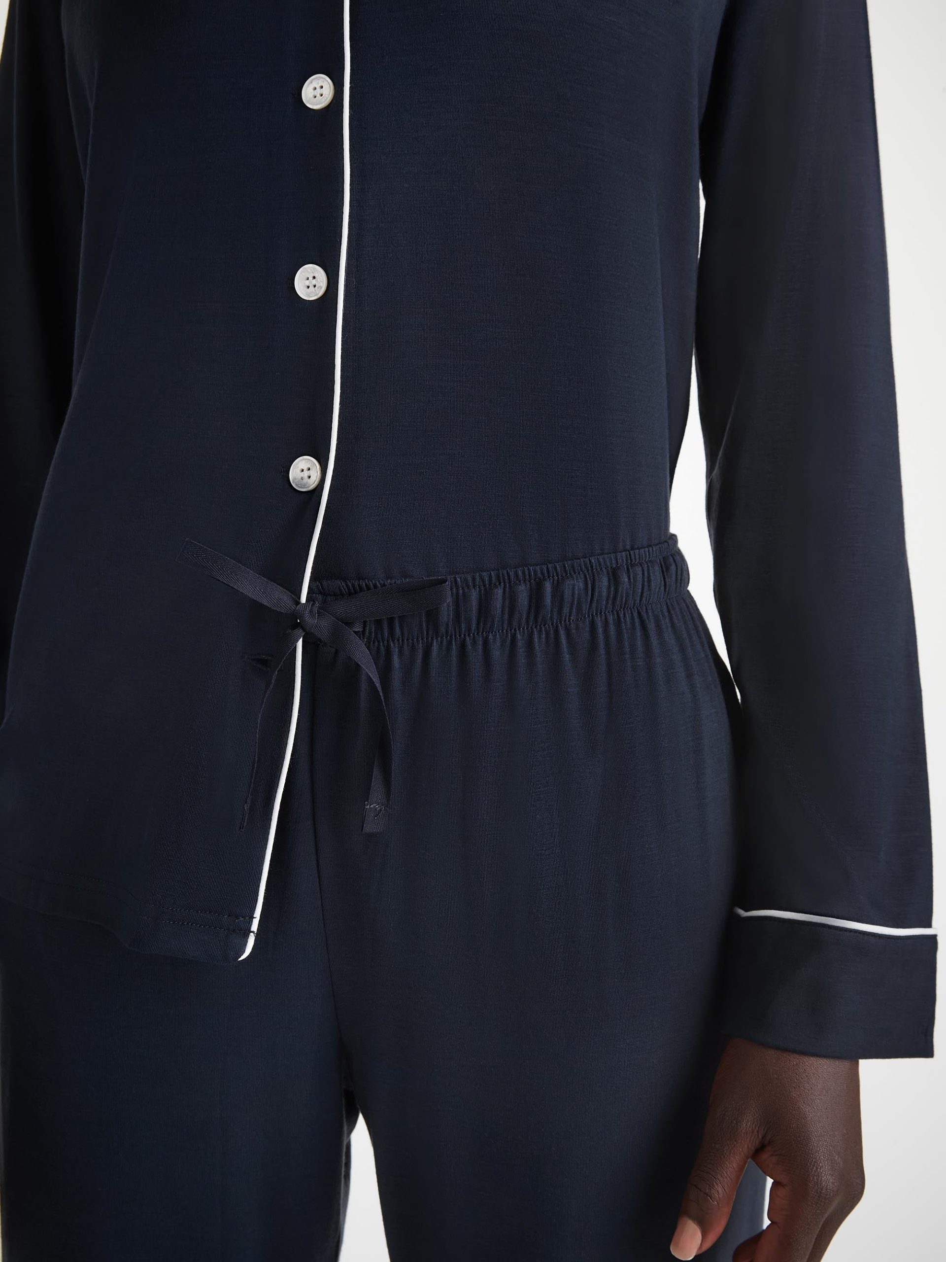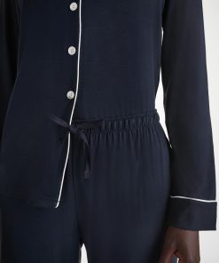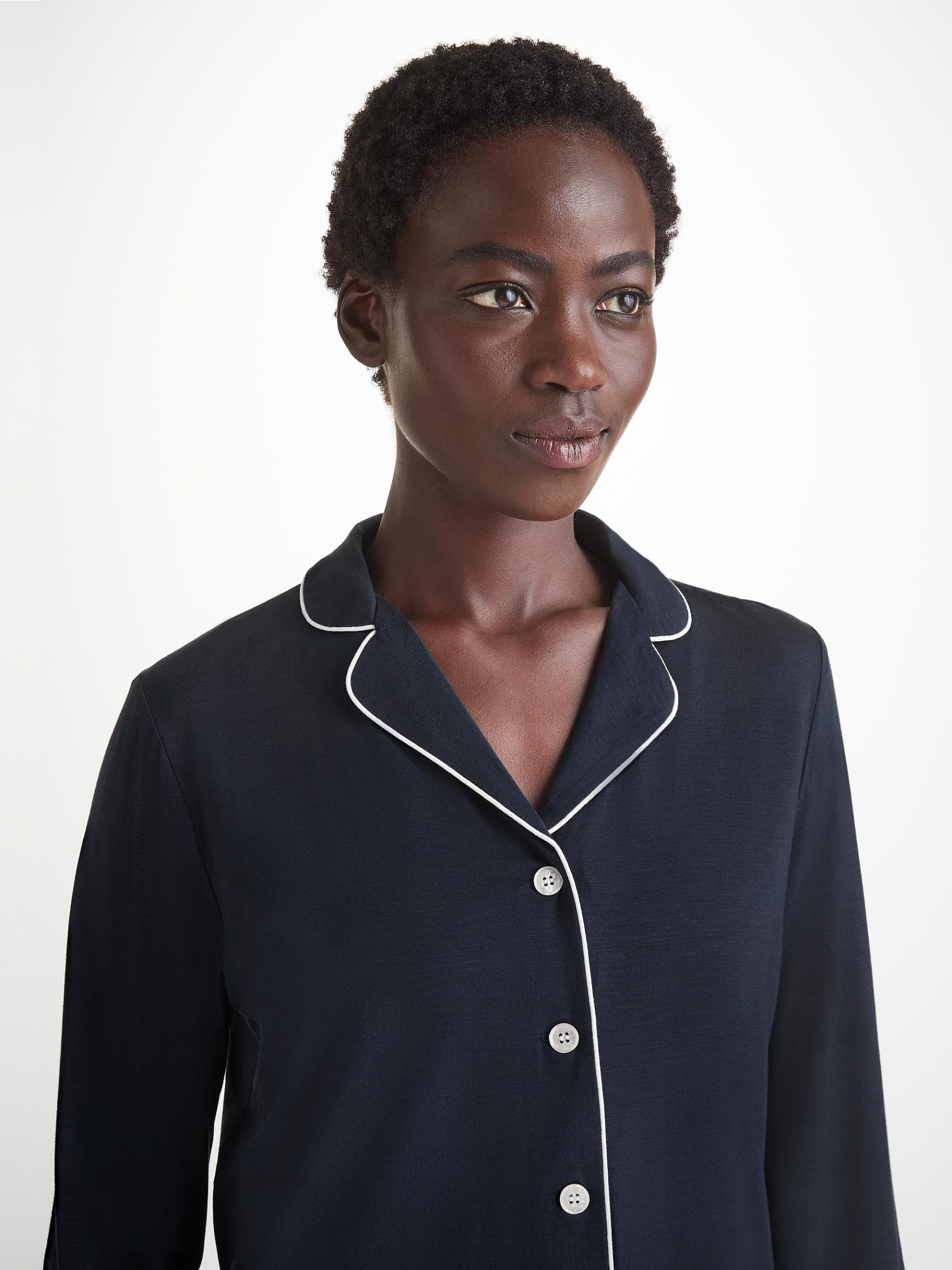 Combining a comfortable and flattering shape with intricate details, our navy Lara women’s pyjamas will keep you looking great and feeling comfortable throughout the seasons.