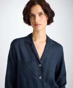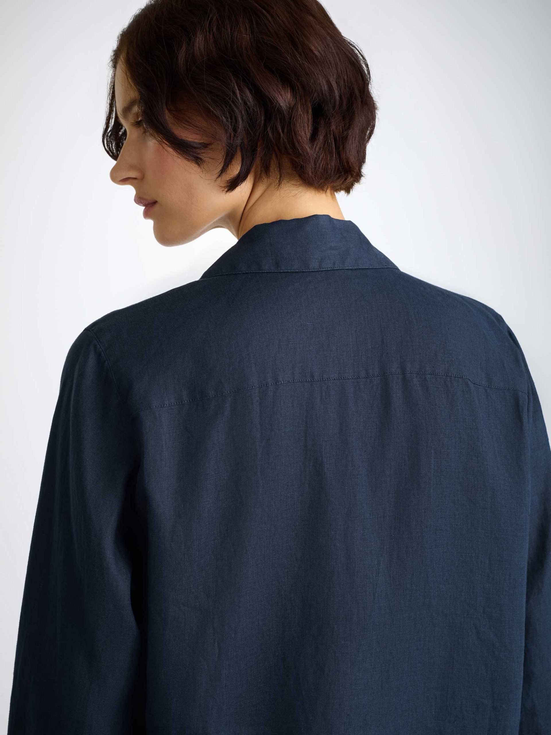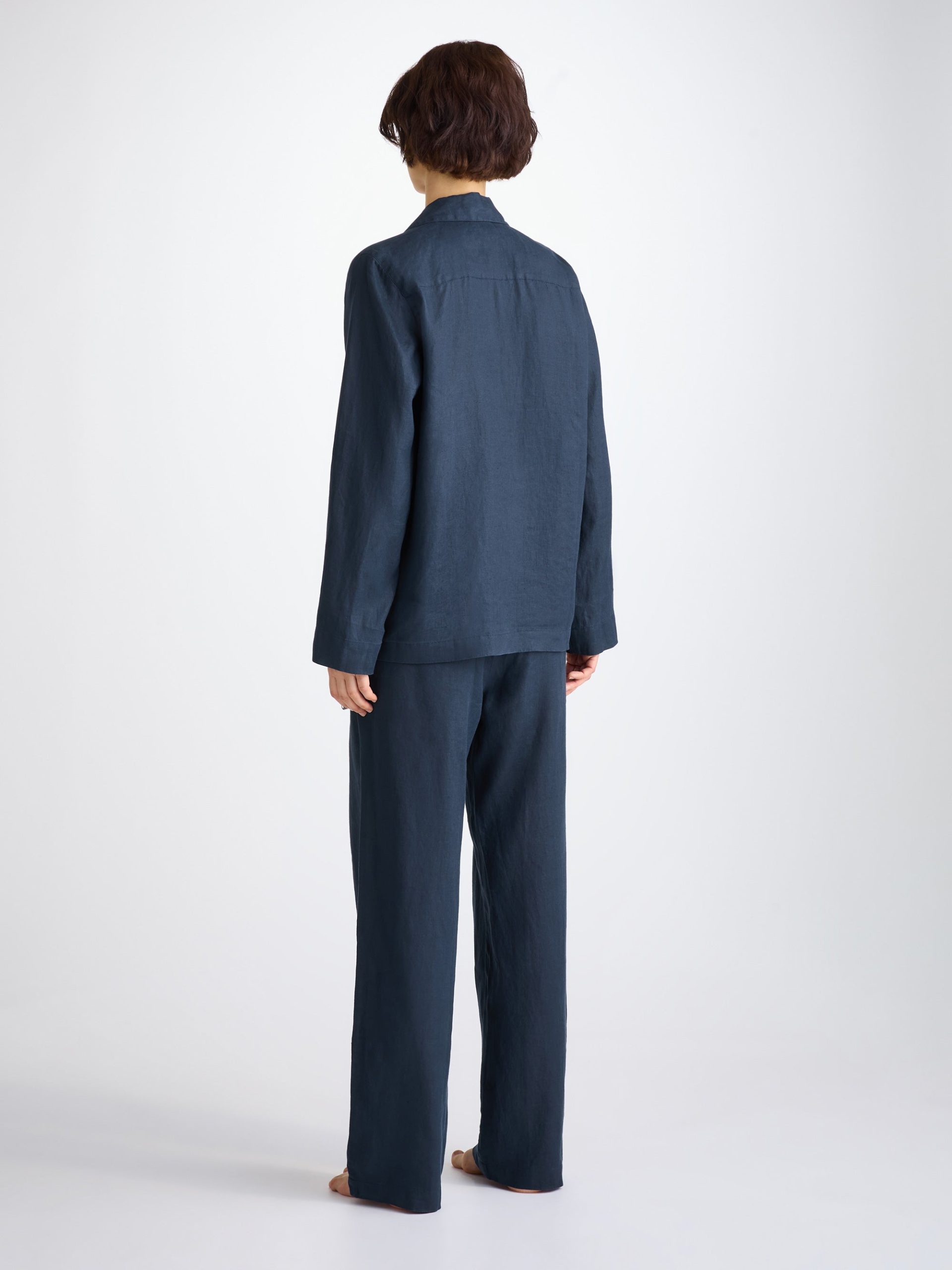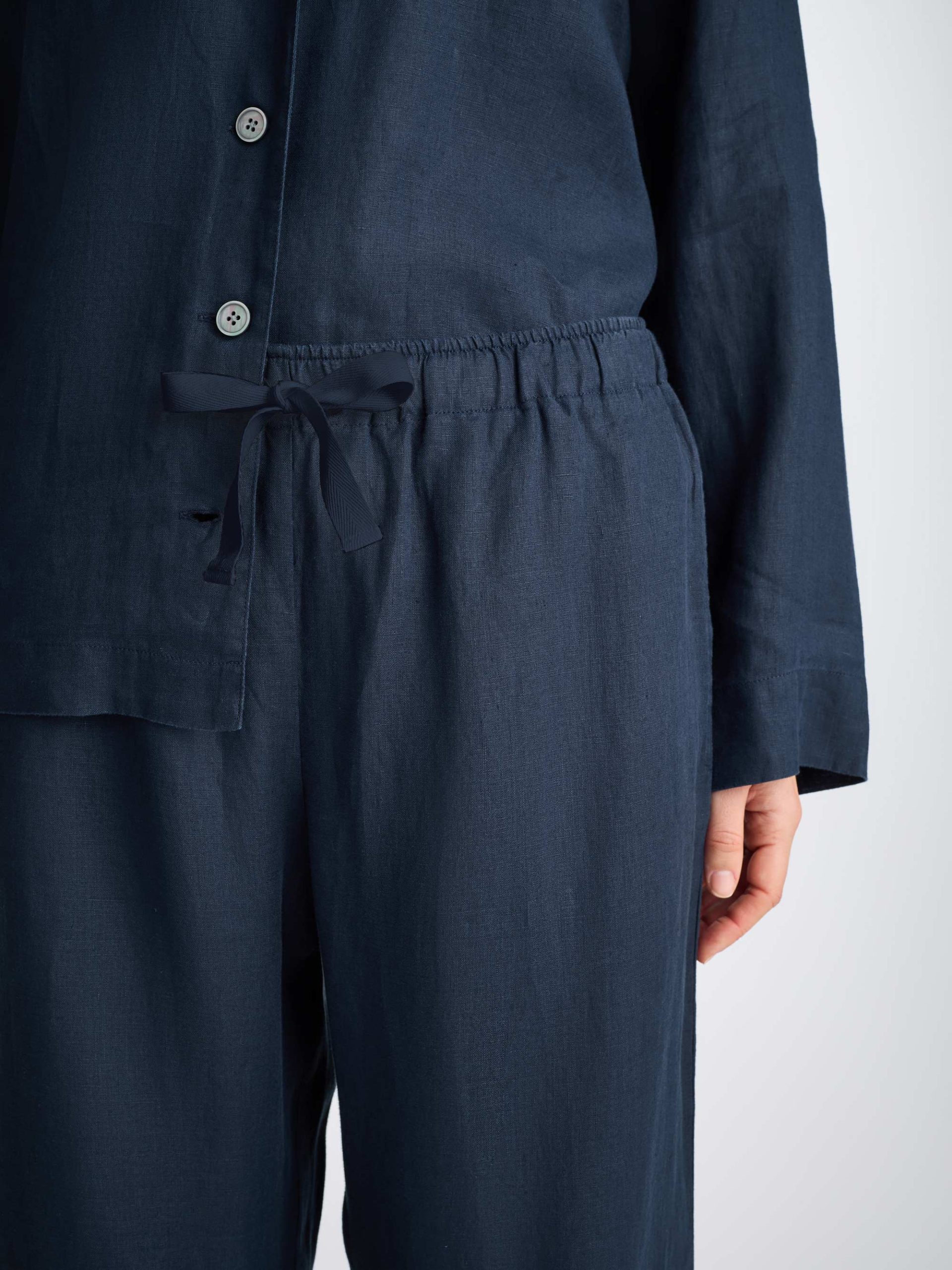 DEREK ROSE Women’s Pajamas Sicily Linen Navy Navy | WOMENS- Pajamas