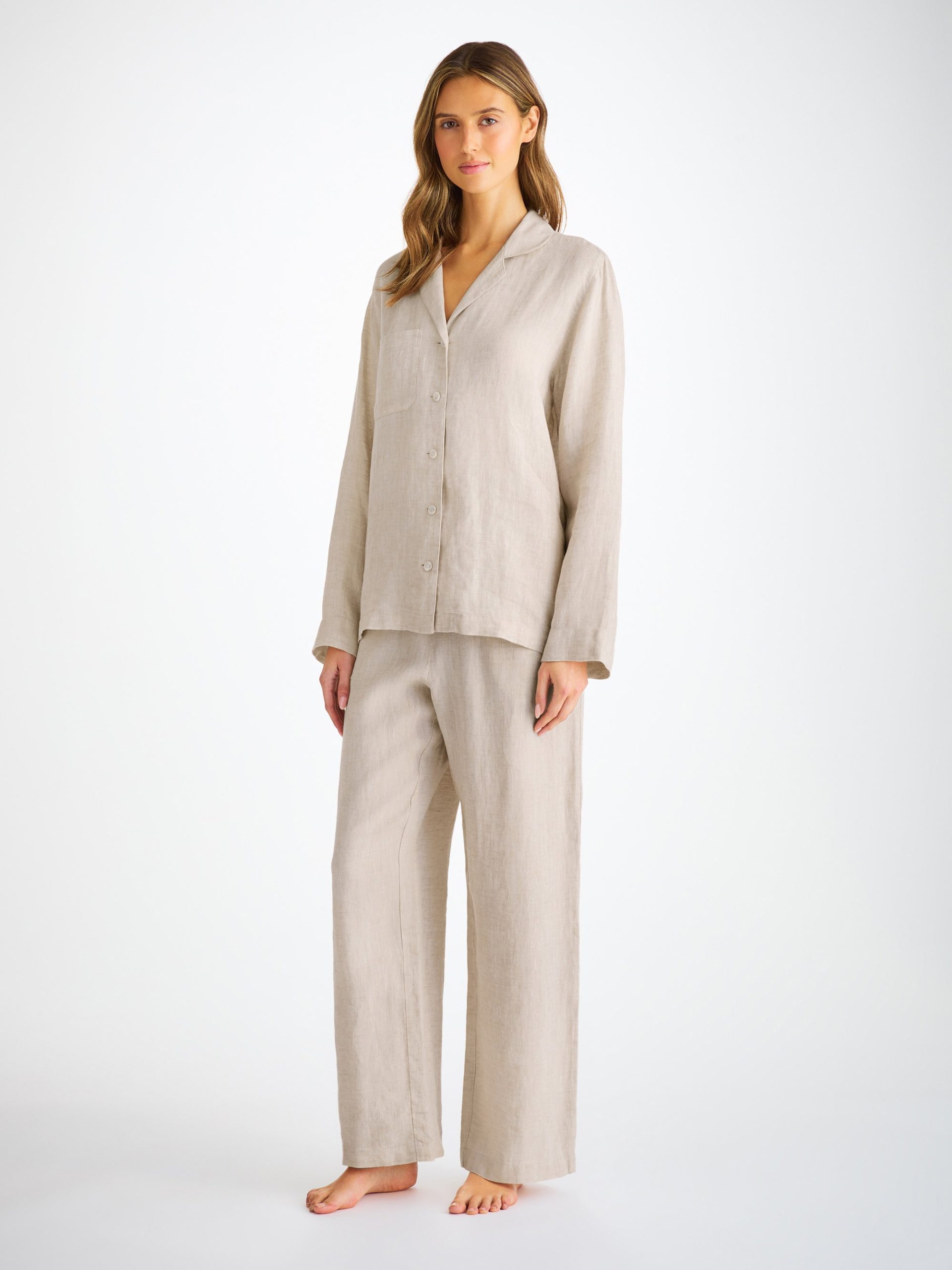 DEREK ROSE Women’s Pajamas Sicily Linen Sand Sand | WOMENS- Pajamas