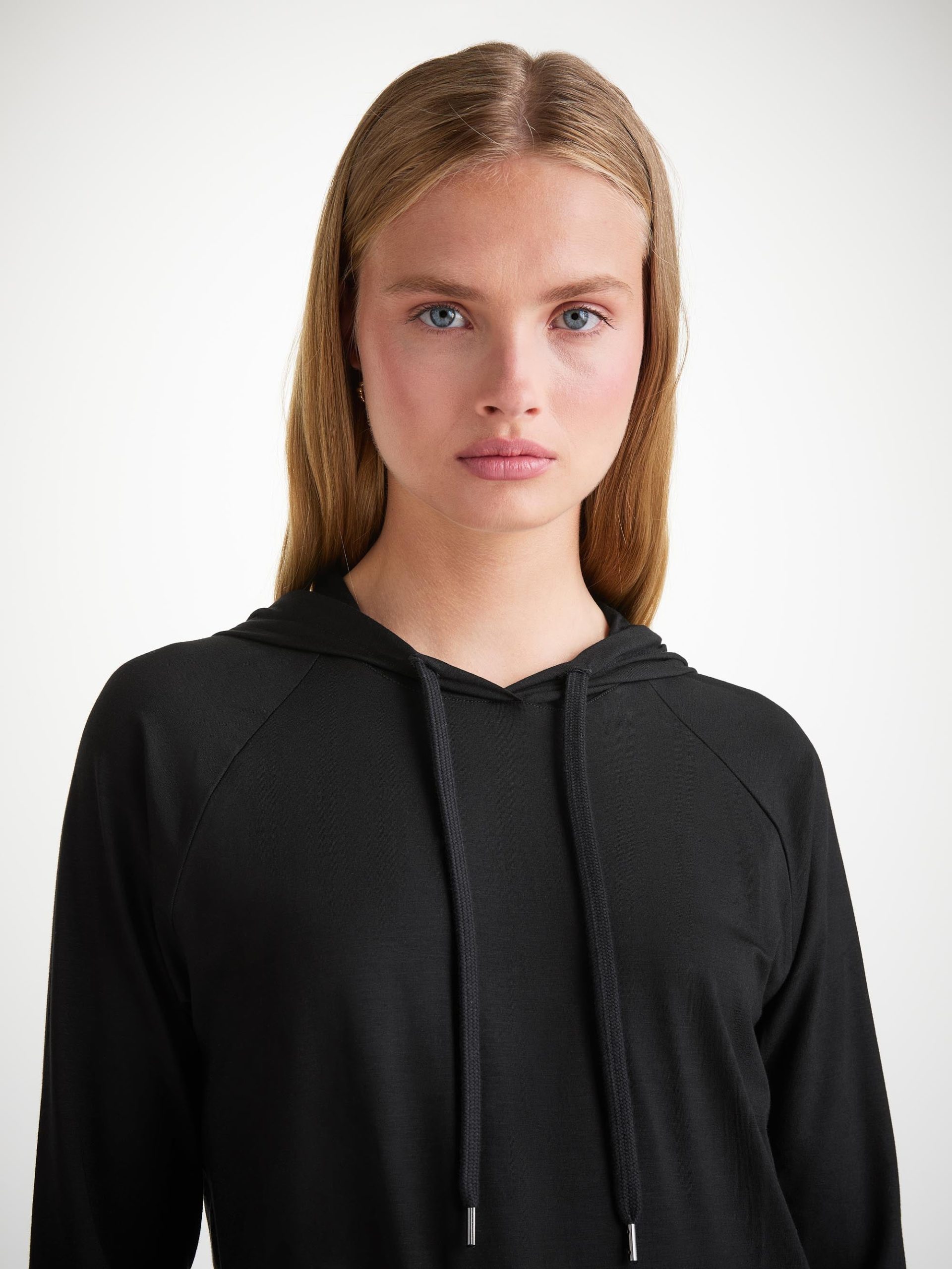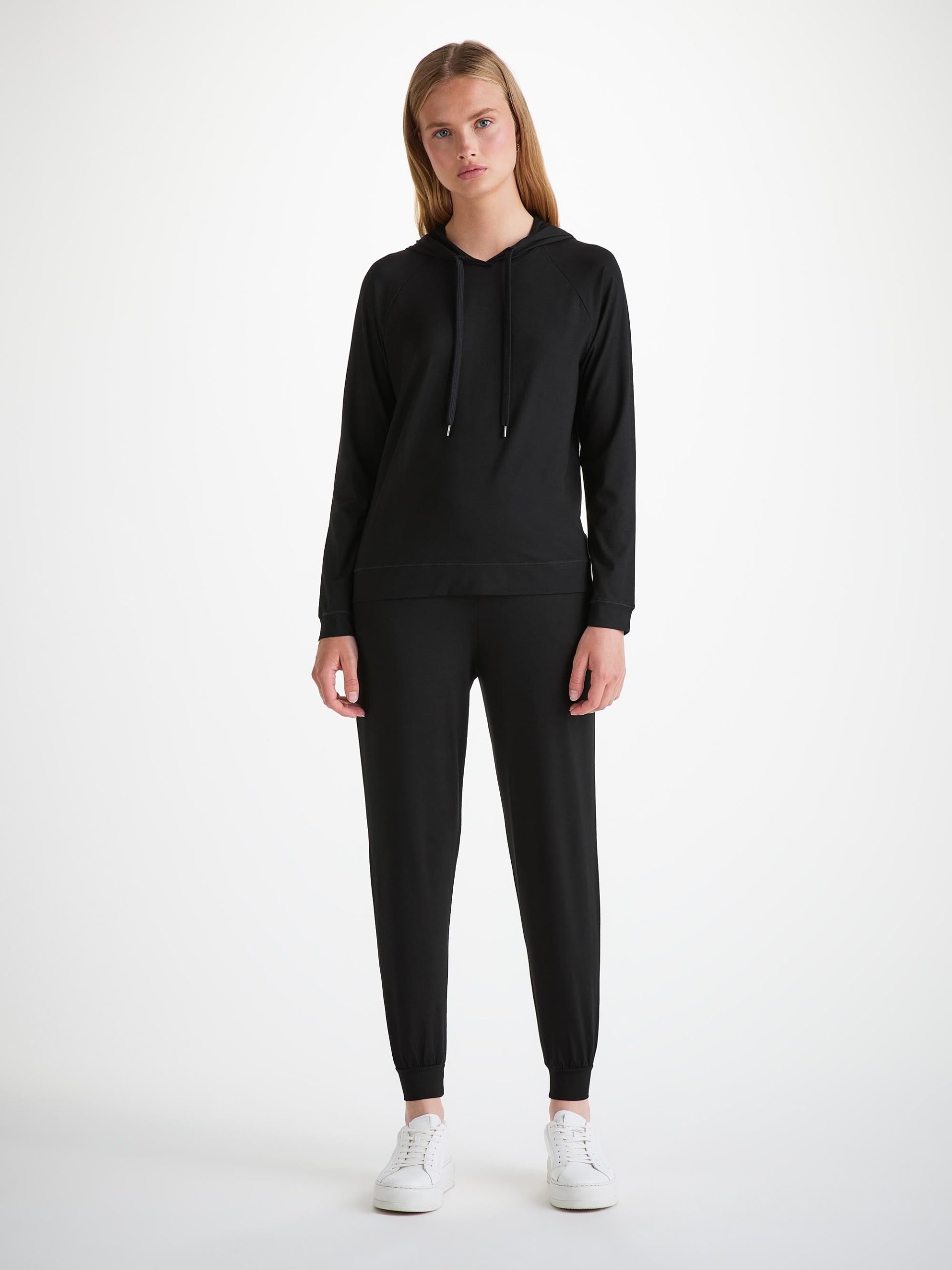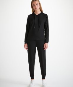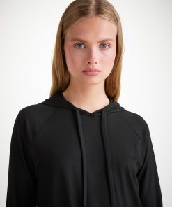 DEREK ROSE Women’s Pullover Hoodie Basel Micro Modal Stretch Black Black | WOMENS- Best Sellers