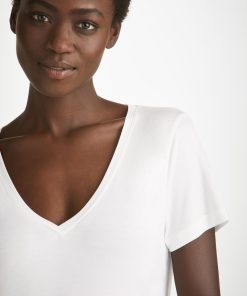 DEREK ROSE Women’s V-Neck T-Shirt Lara Micro Modal Stretch White White | WOMENS- Best Sellers