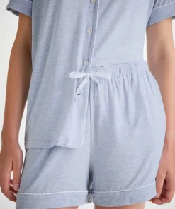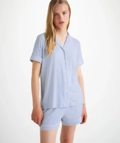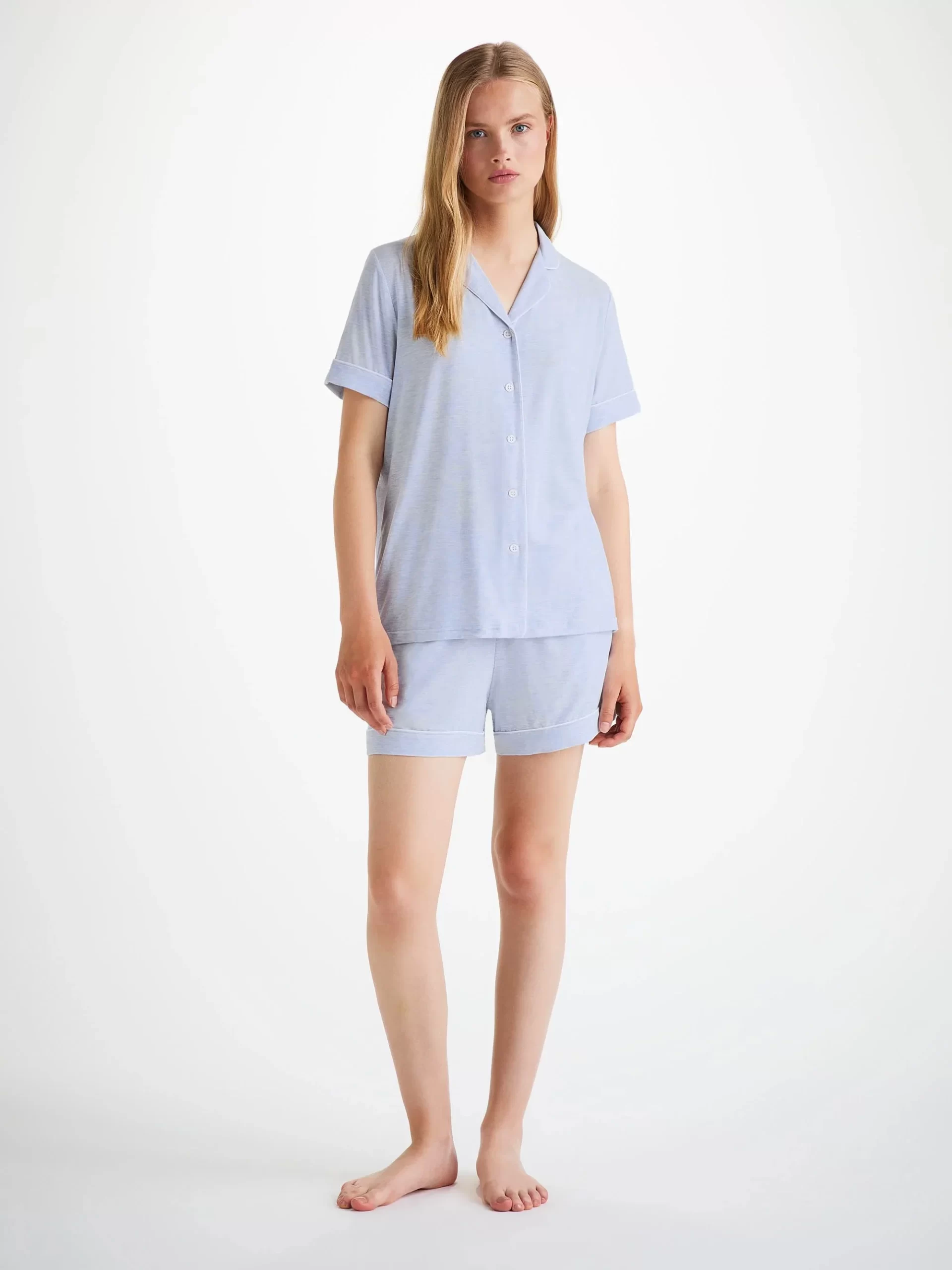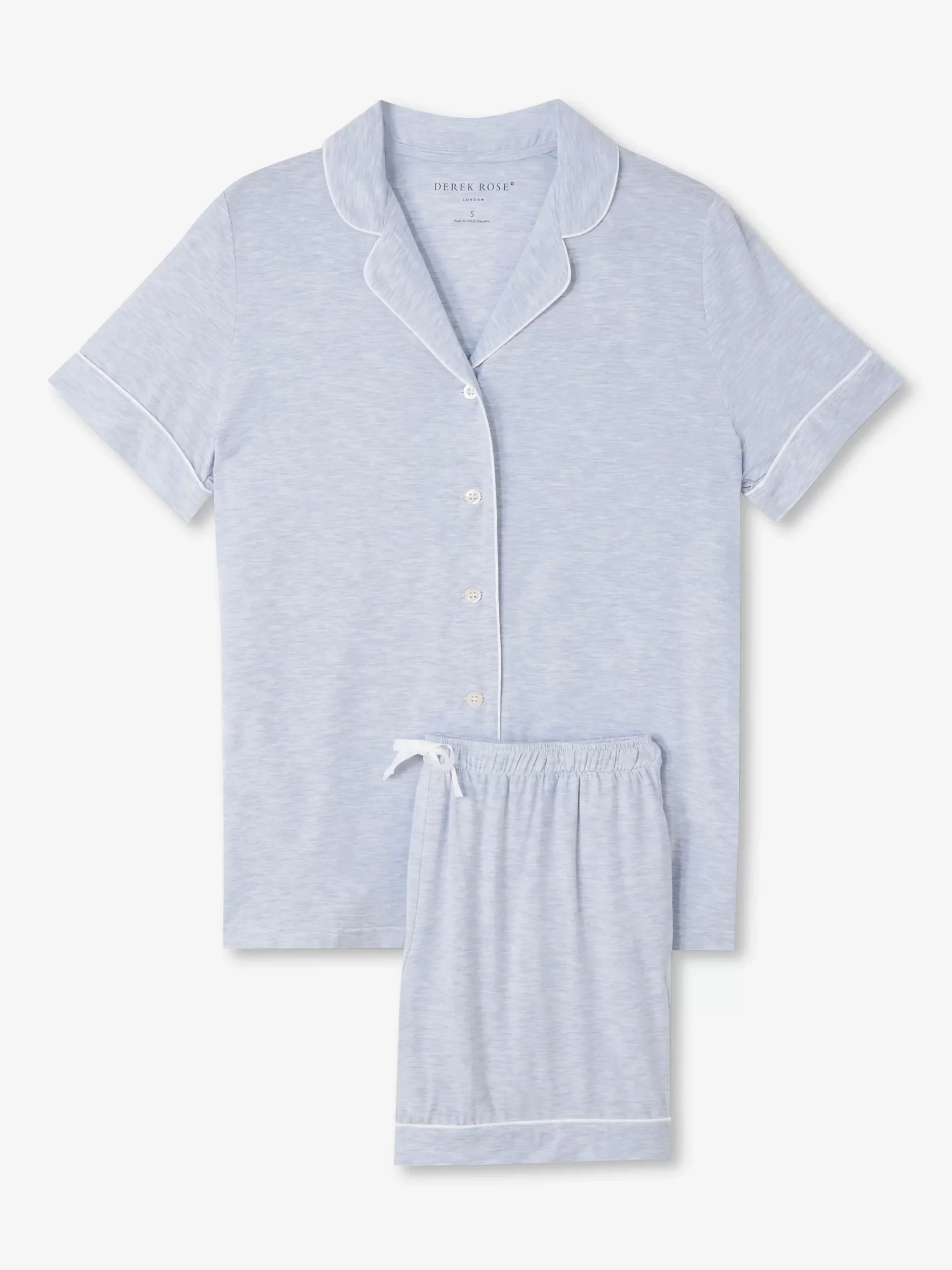 DEREK ROSE Women’s Short Pajamas Ethan Micro Modal Stretch Light Blue Marl Light Blue Marl | WOMENS- Best Sellers