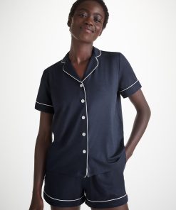 DEREK ROSE Women’s Short Pajamas Lara Micro Modal Stretch Navy Navy | WOMENS- Best Sellers