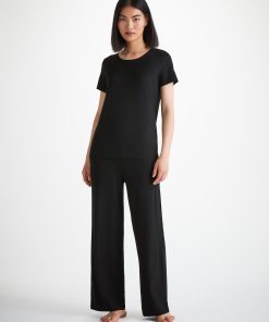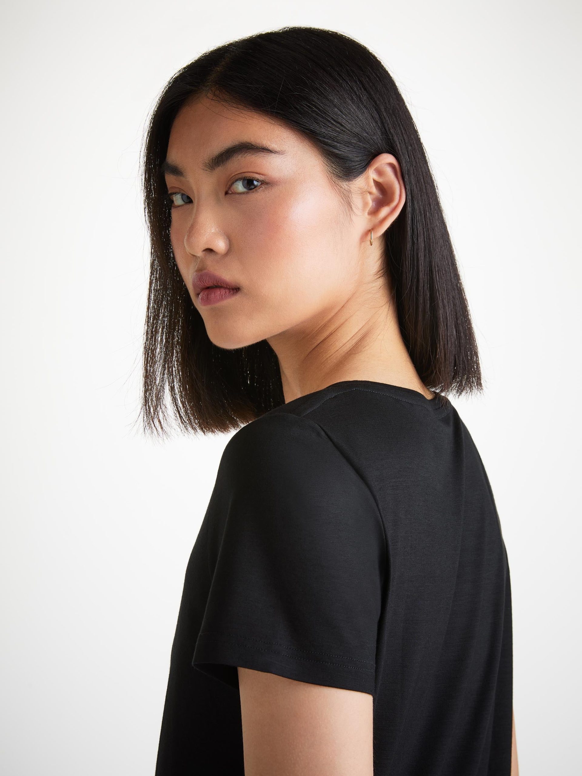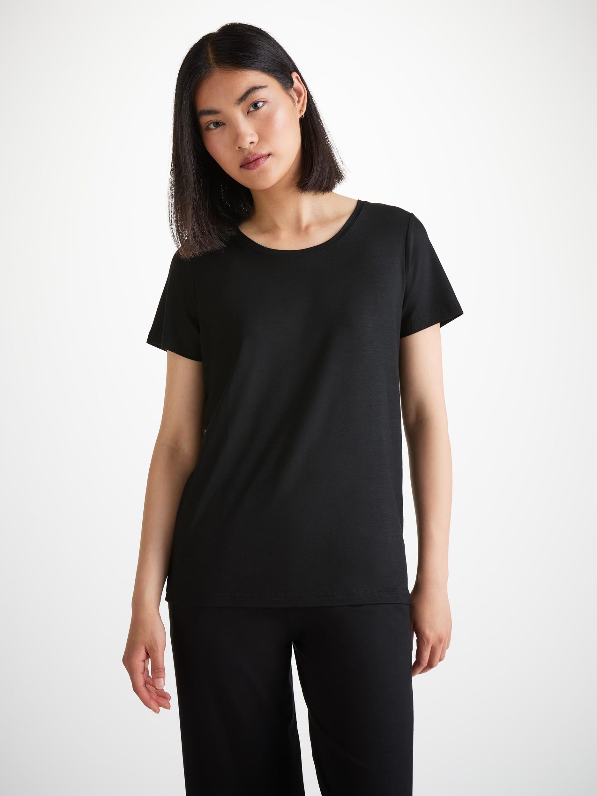 DEREK ROSE Women’s T-Shirt Lara Micro Modal Stretch Black Black | WOMENS- Best Sellers