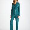 DEREK ROSE Women’s Long Robe Kelburn 45 Brushed Cotton Green Sage Green | WOMENS- Best Sellers