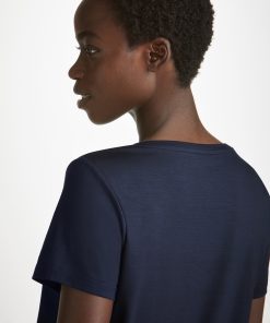 DEREK ROSE Women’s V-Neck Sleep T-Shirt Lara Micro Modal Stretch Navy Navy | WOMENS- Best Sellers