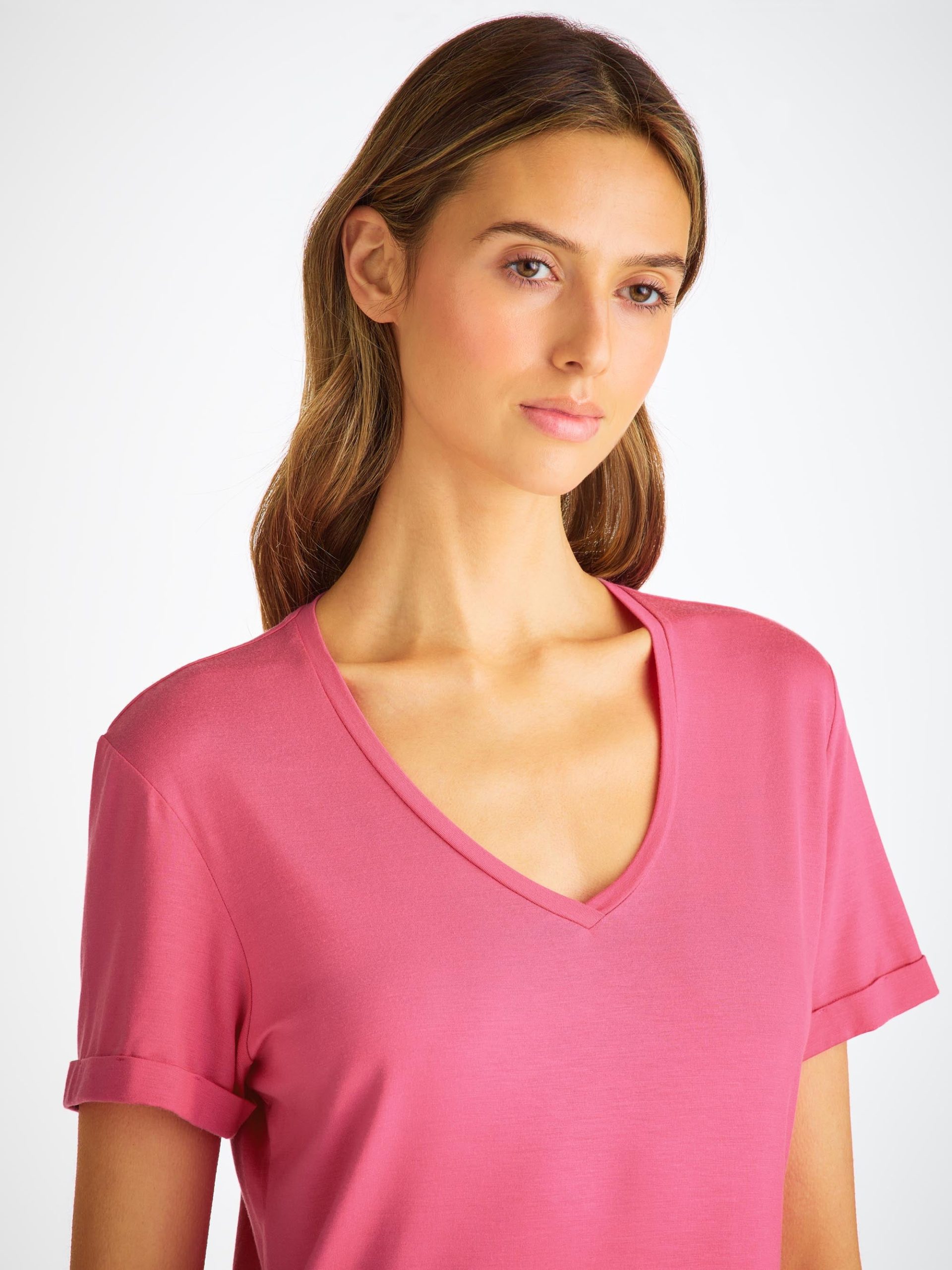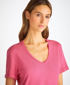 DEREK ROSE Women’s V-Neck Sleep T-Shirt Lara Micro Modal Stretch Flamingo Pink Flamingo Pink | WOMENS- Pajamas