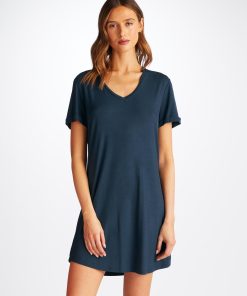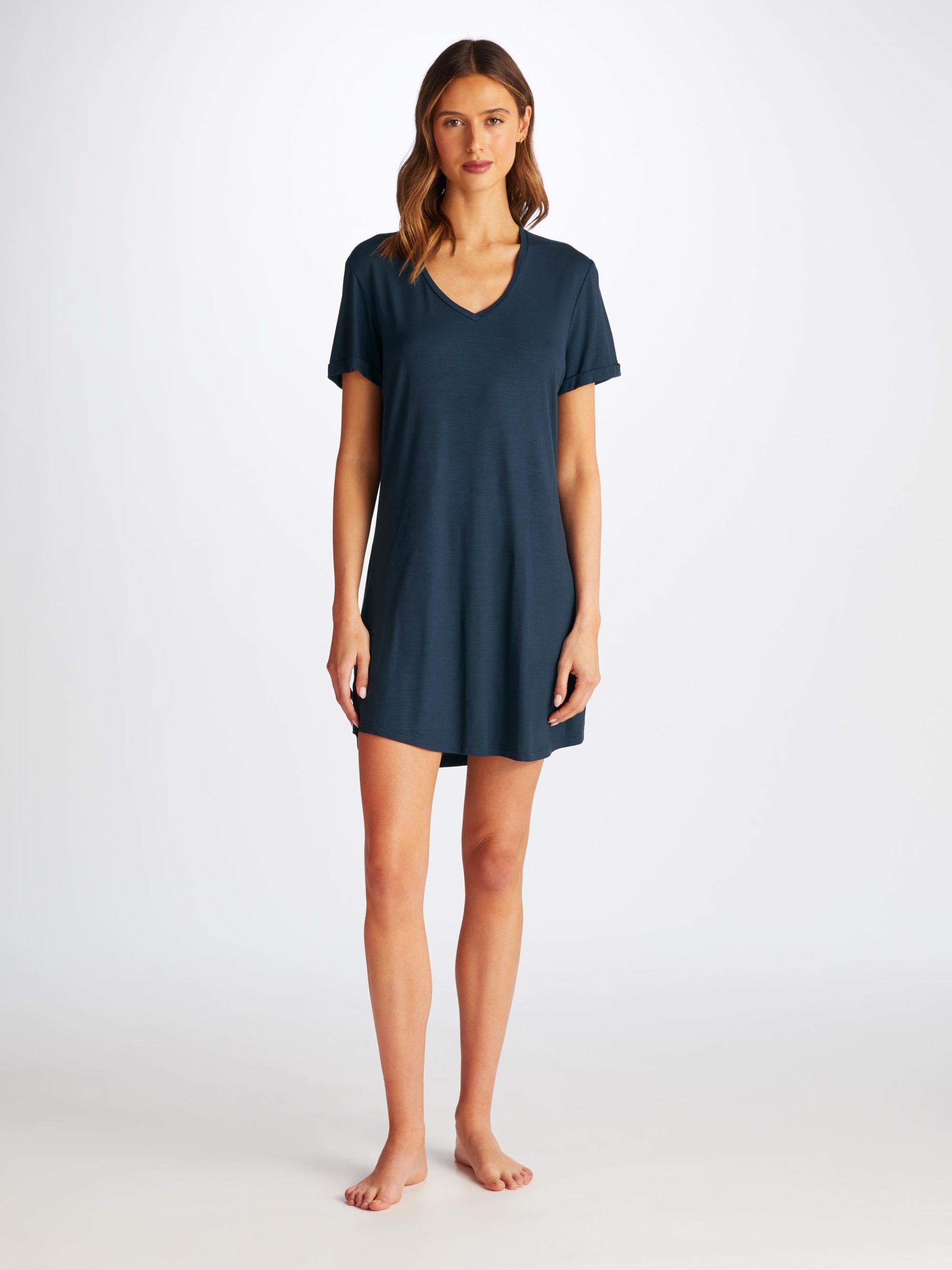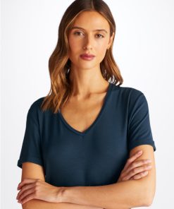 DEREK ROSE Women’s V-Neck Sleep T-Shirt Lara Micro Modal Stretch Navy Navy | WOMENS- Best Sellers