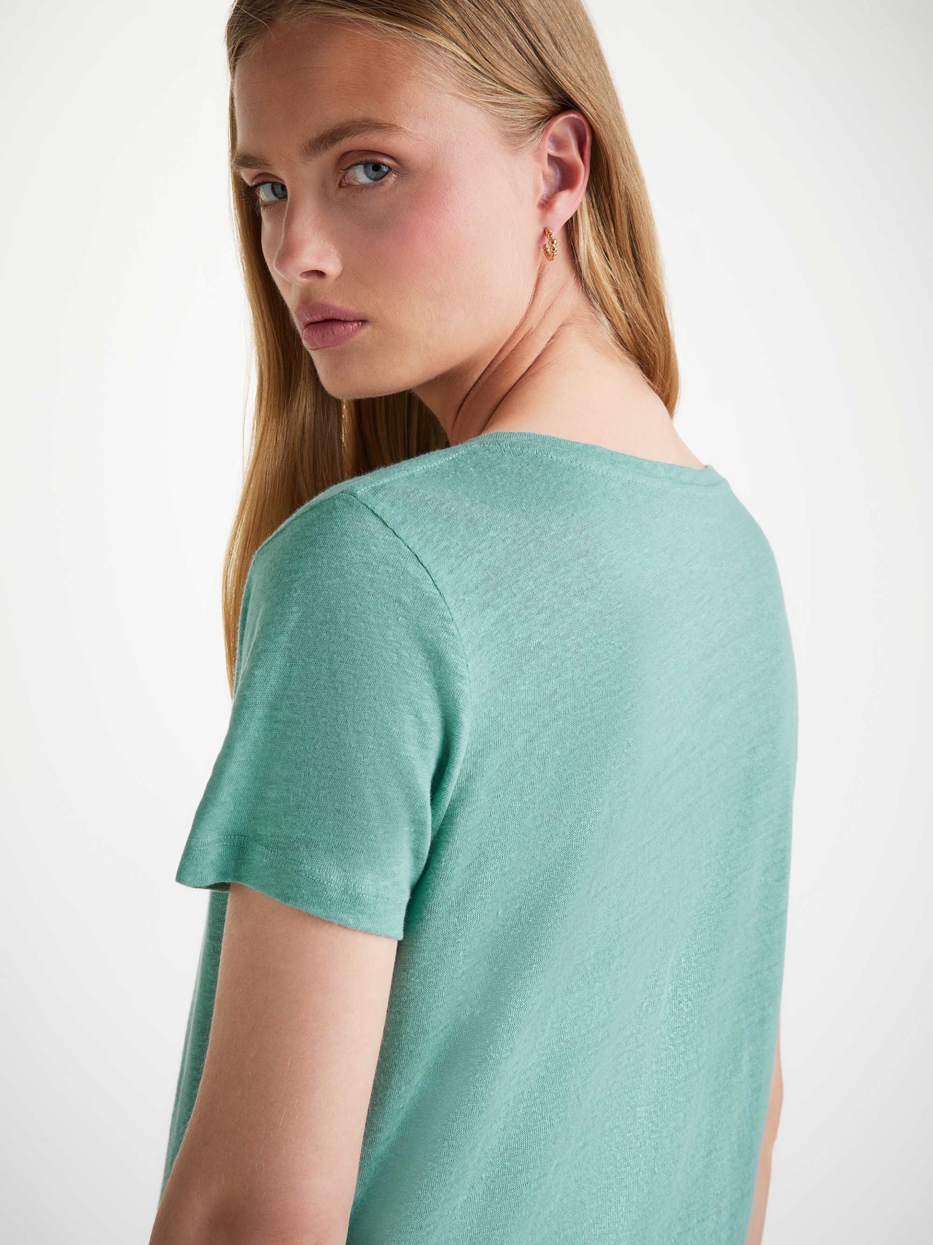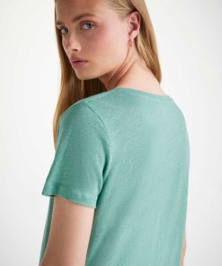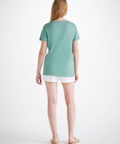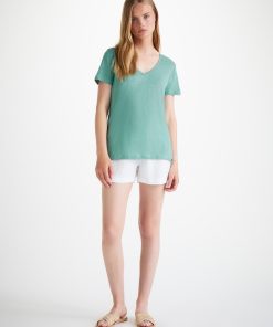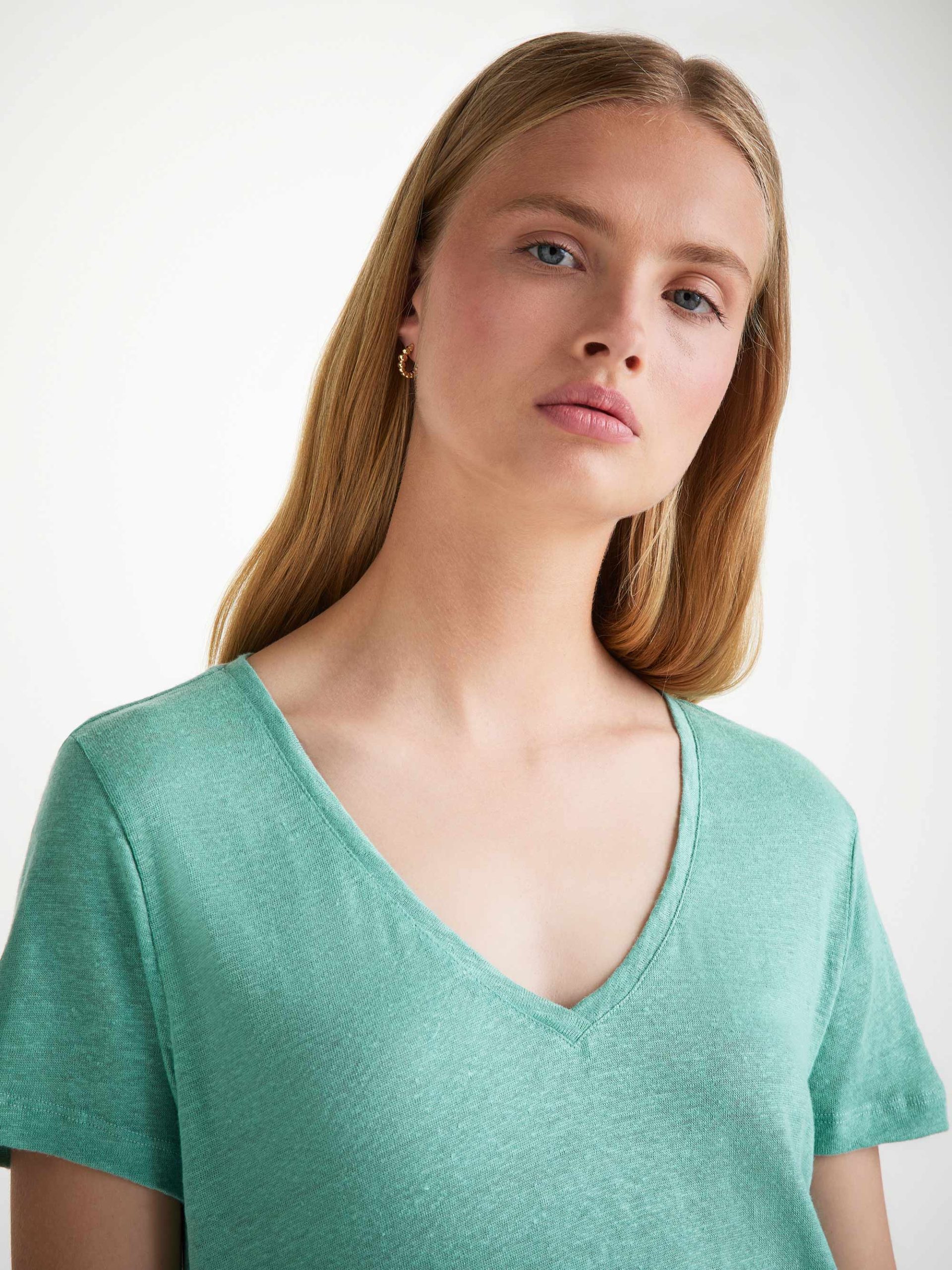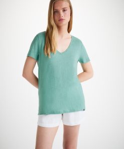 Our women’s Jordan v-neck t-shirt needs to be touched to be believed. Jordan is an exceptionally soft pure linen jersey; this is like no other linen shirt you own. A fabric that typically comes with that rough feeling, our Jordan is cut from a super-soft and lightweight pure linen, knitted with a very fine yarn and finished with a soft wash.