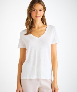 DEREK ROSE Women’s V-Neck T-Shirt Jordan Linen White White | WOMENS- Best Sellers