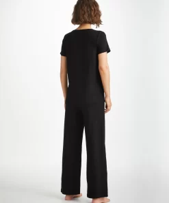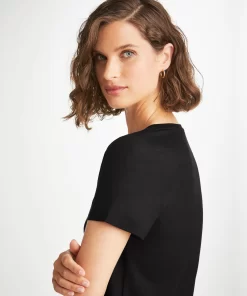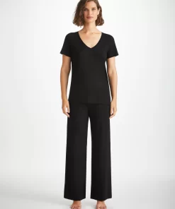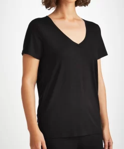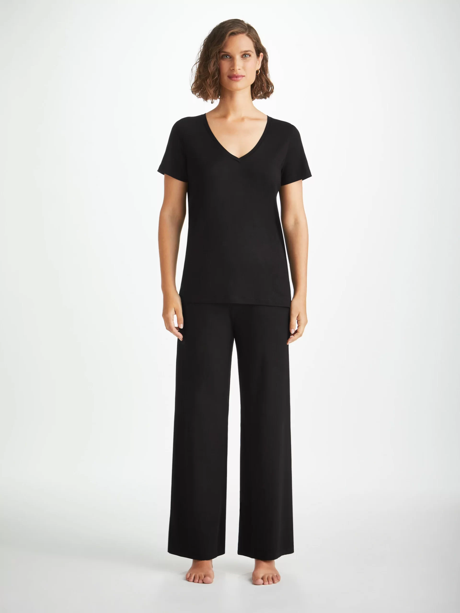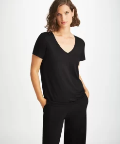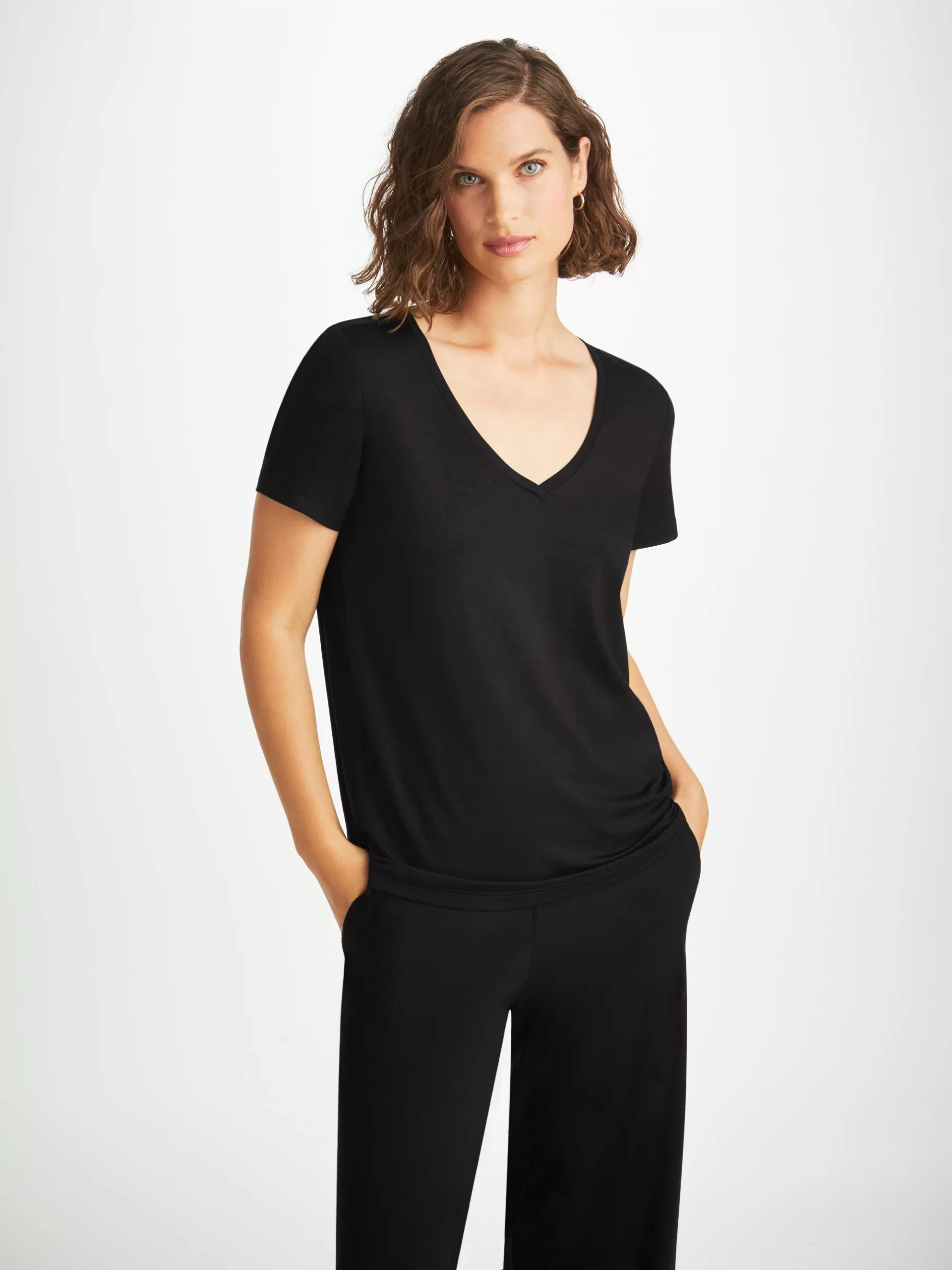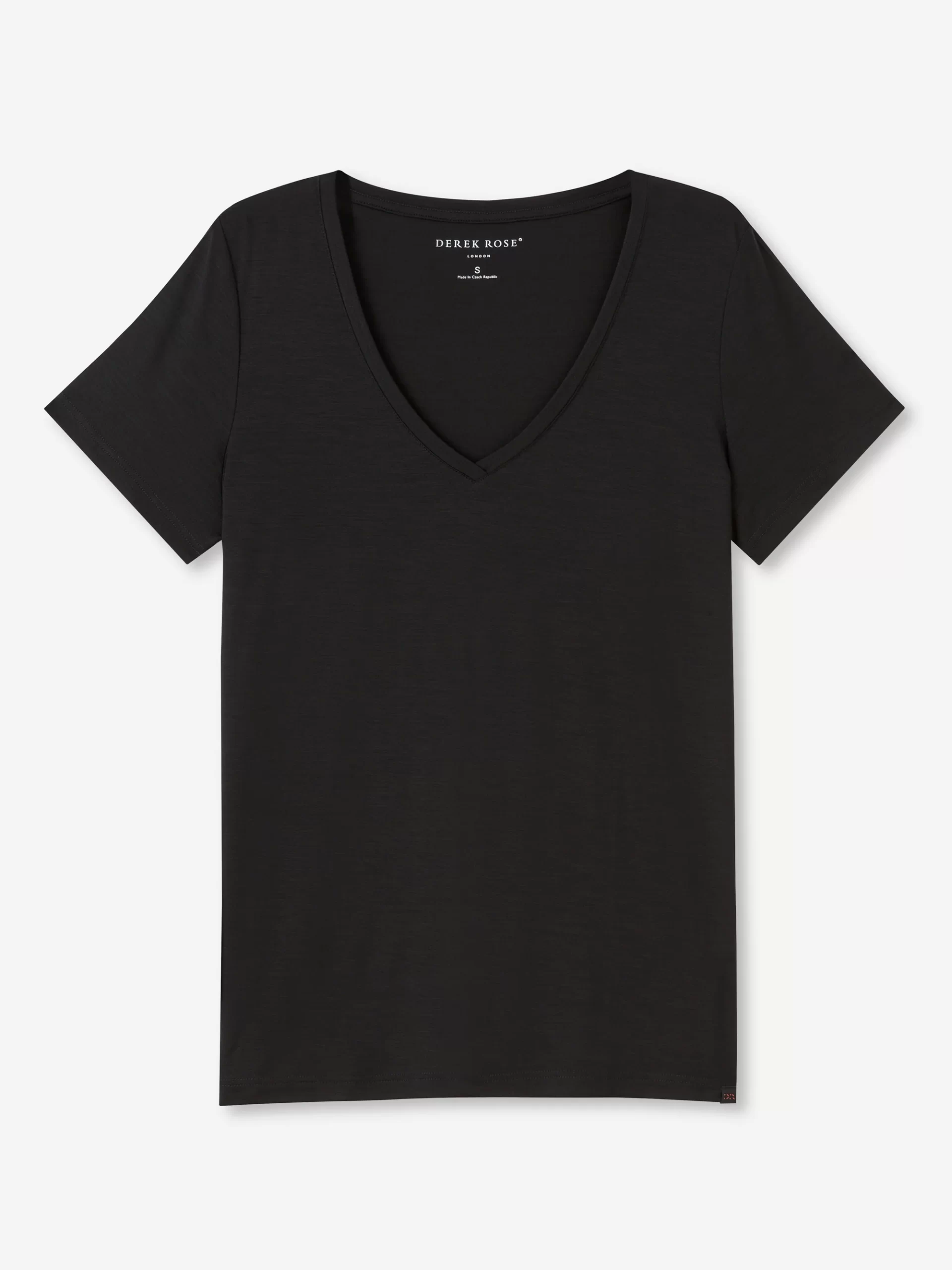 DEREK ROSE Women’s V-Neck T-Shirt Lara Micro Modal Stretch Black Black | WOMENS- Gifts for Her