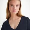 Our Lara t-shirt is a true wardrobe essential and perfect for layering. Seen here in black, it offers a relaxed fit, a soft v-neck and twin needle sleeves and has been designed to sit perfectly underneath all our sweaters and hoodies.