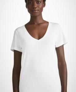 DEREK ROSE Women’s V-Neck T-Shirt Lara Micro Modal Stretch White White | WOMENS- Best Sellers